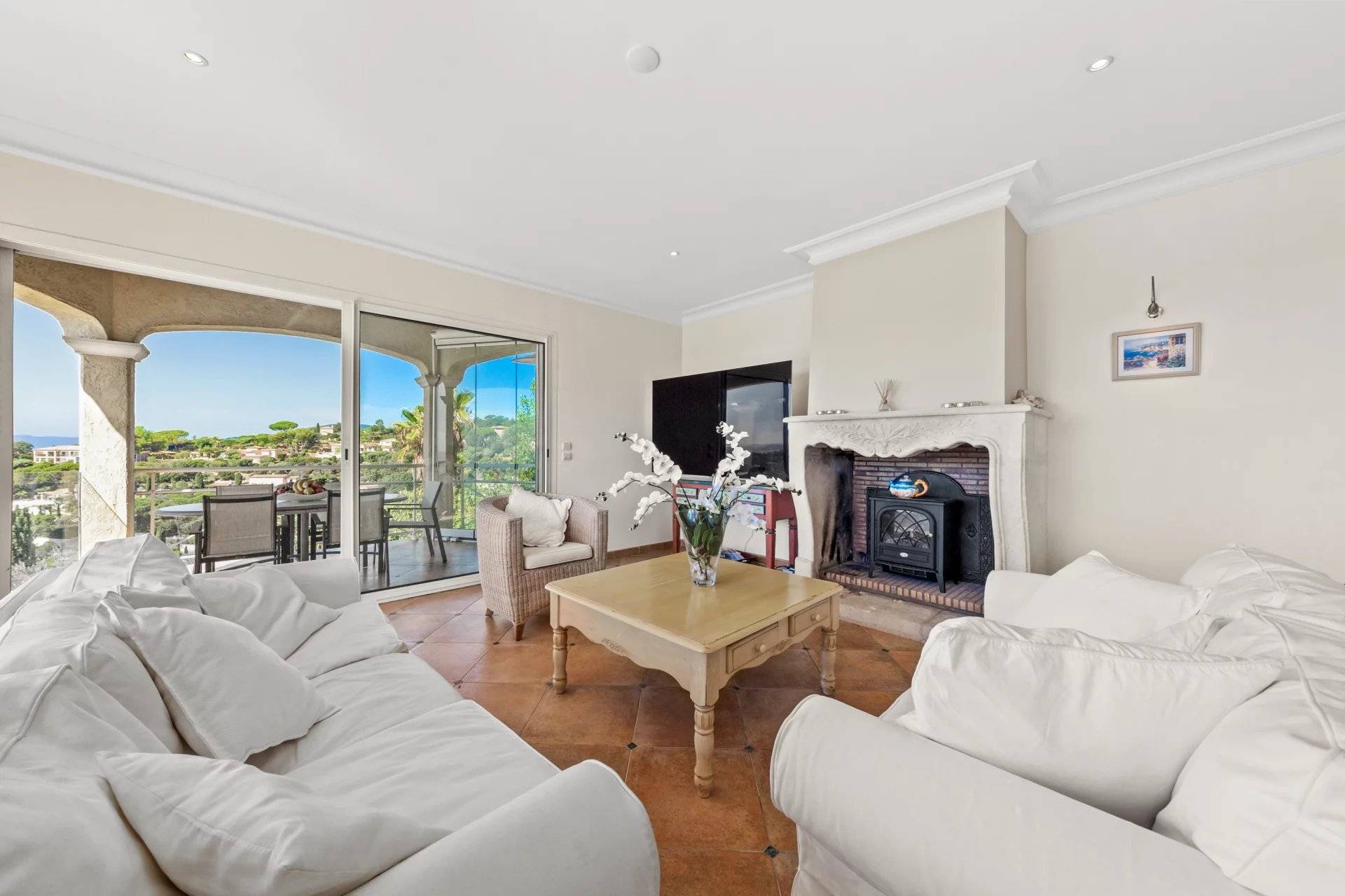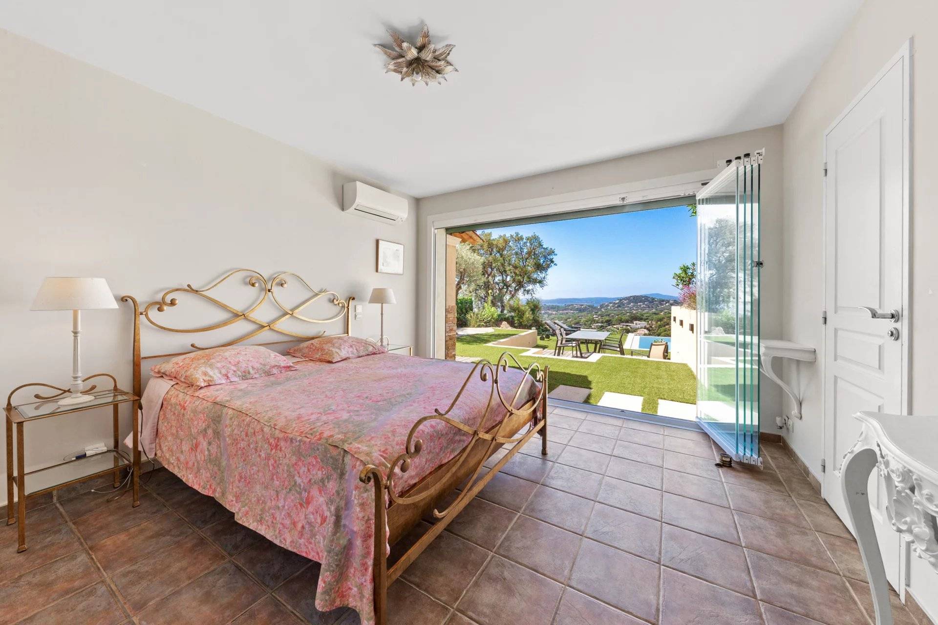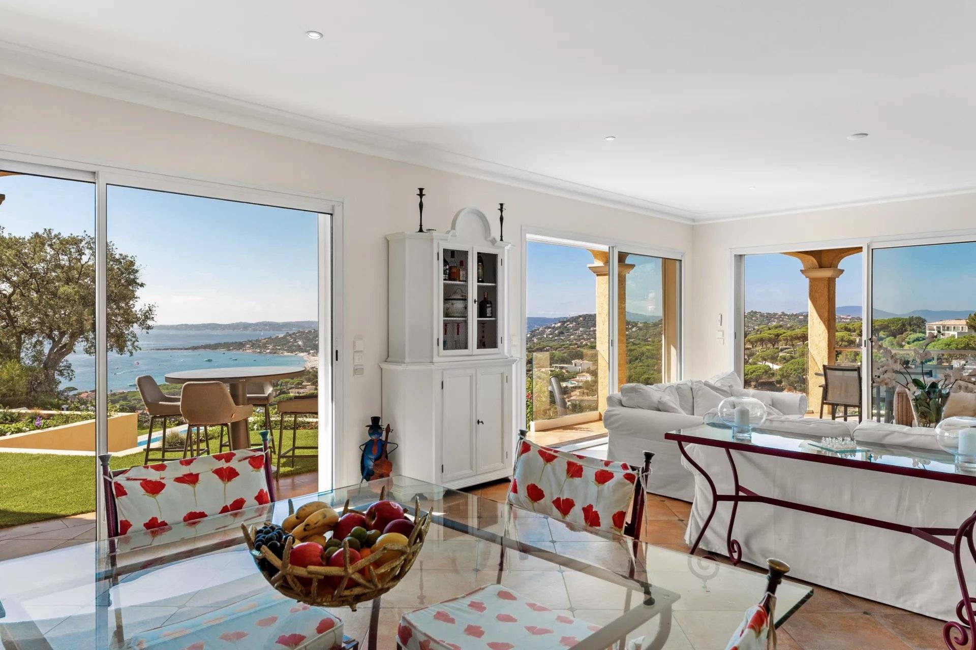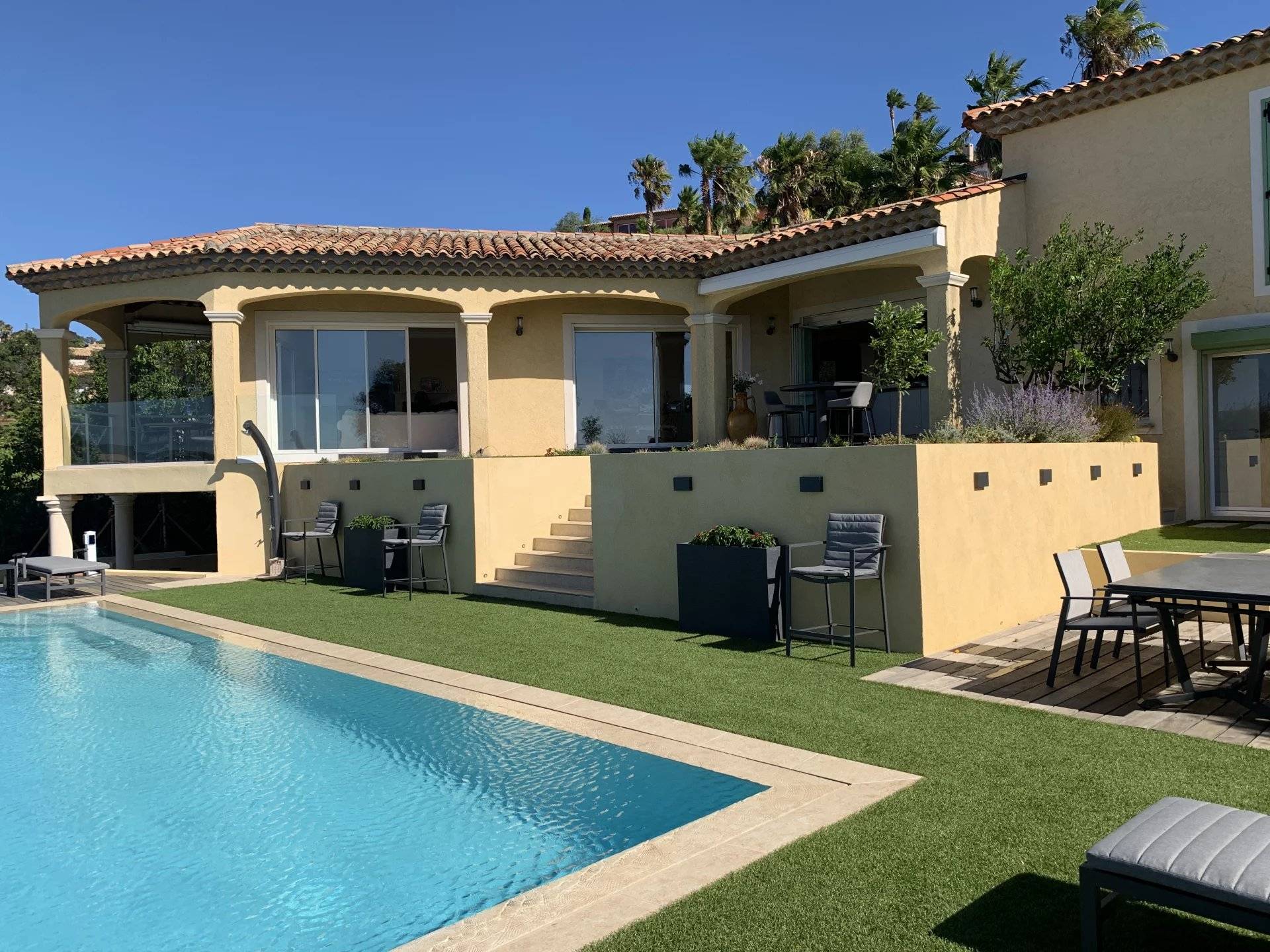 例外的なヴィラ、パノラマ海ビュー。サント・マキシムの高台にある静かなセキュリティ付きのドメインで、2003年に建てられたこの素晴らしいヴィラをぜひご覧ください。家の入り口からは、大きなリビングルームに続き、完全に整備されたアメリカンキッチンがあり、広々としたテラスに面しています。すべてがパノラマ海の景色とプールをどこからでも見ることができるように配置されています。庭の階には、専用のバスルーム、トイレ、プライベートテラスを備えた4つの大きなスイートルームがあります。豪華なワインセラー、ランドリールーム、独立した広いスタジオも付いています。希少な物件で、素晴らしい季節的な賃貸収益があります!