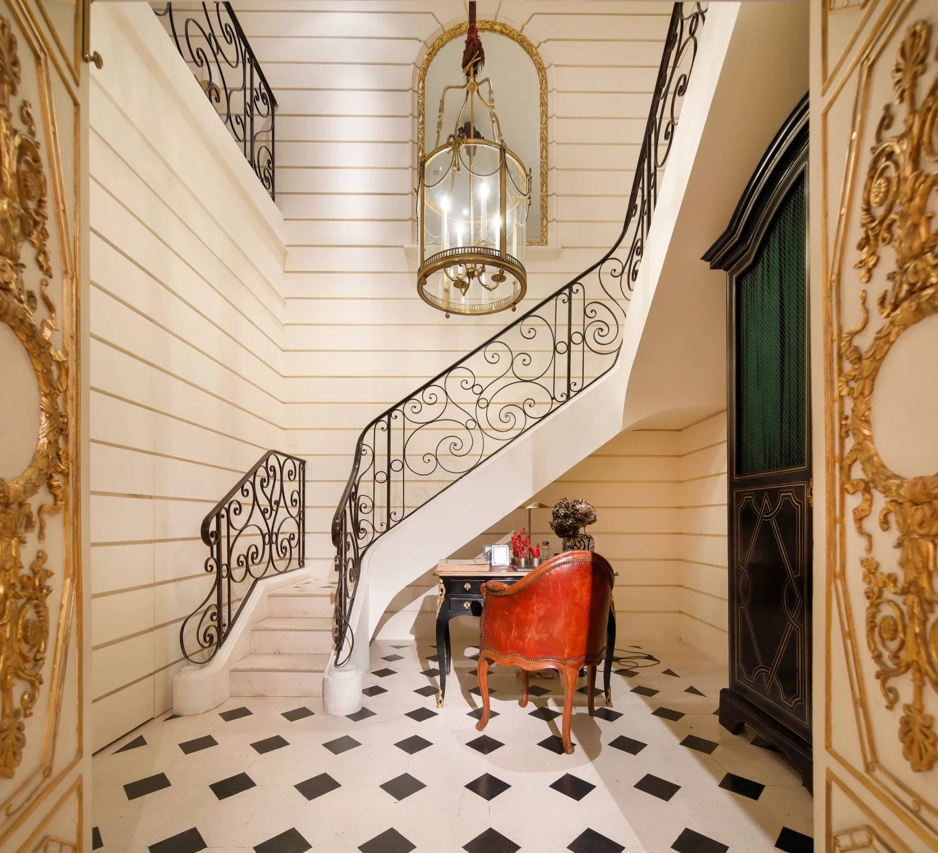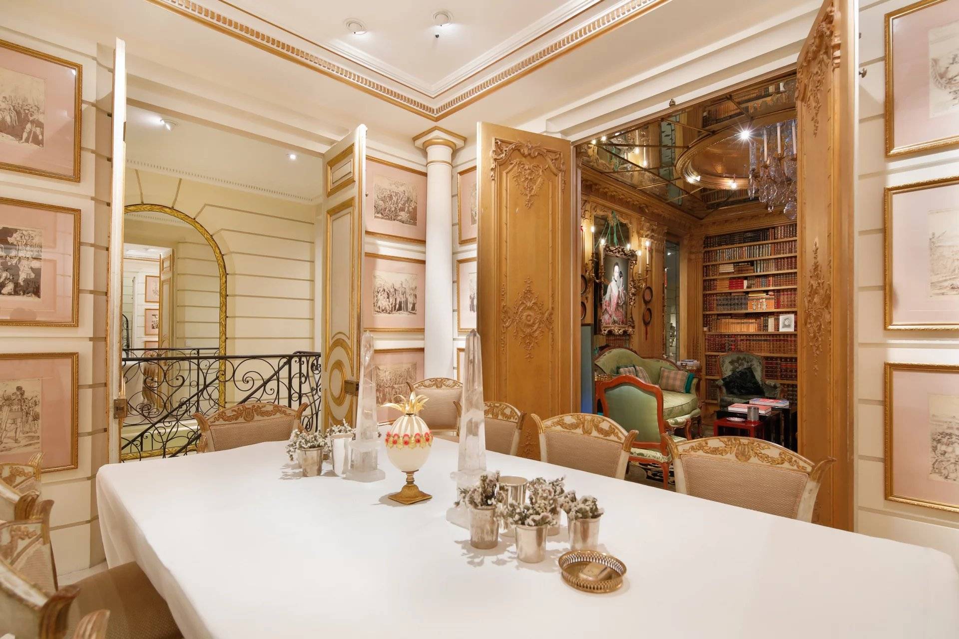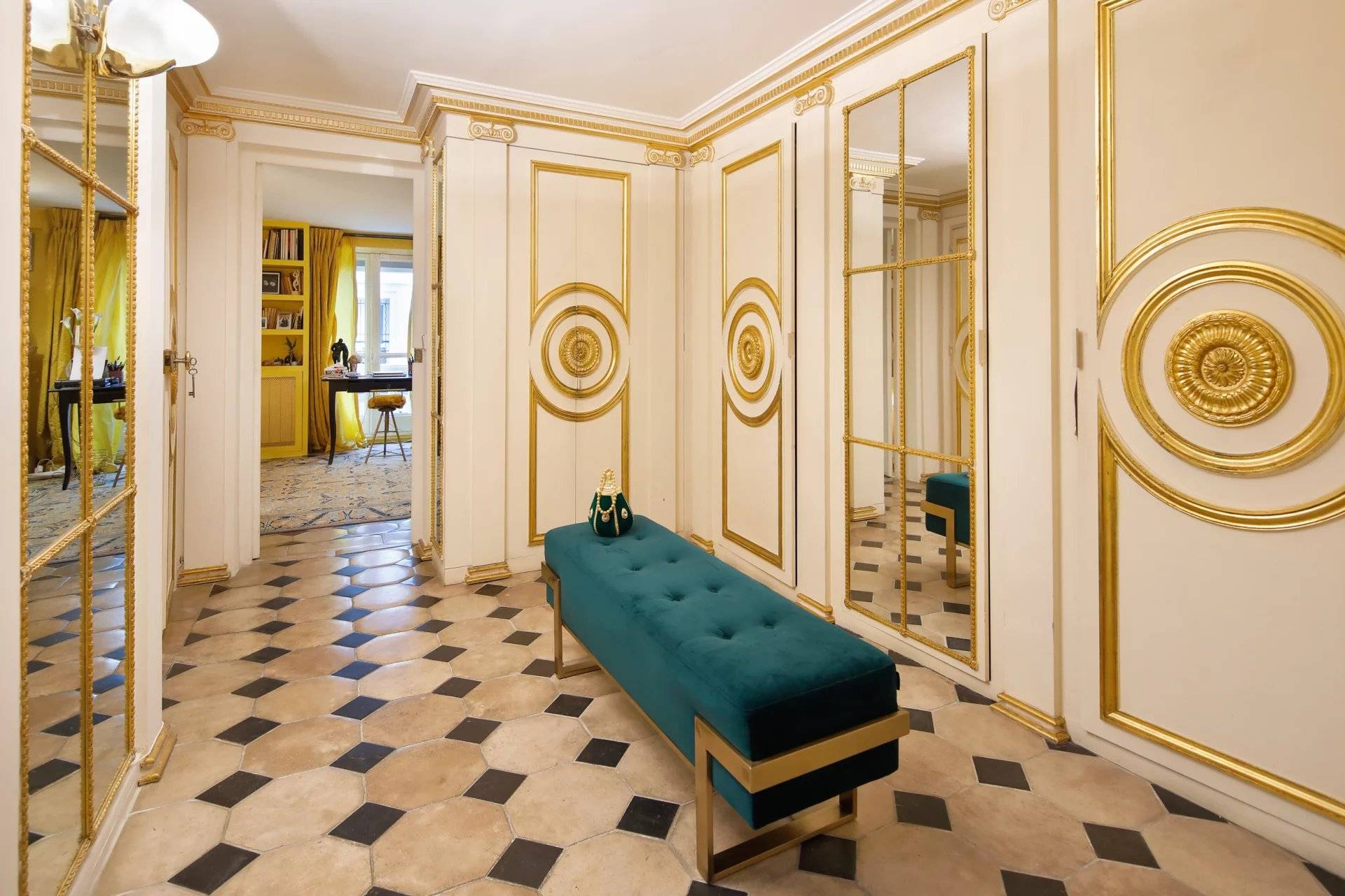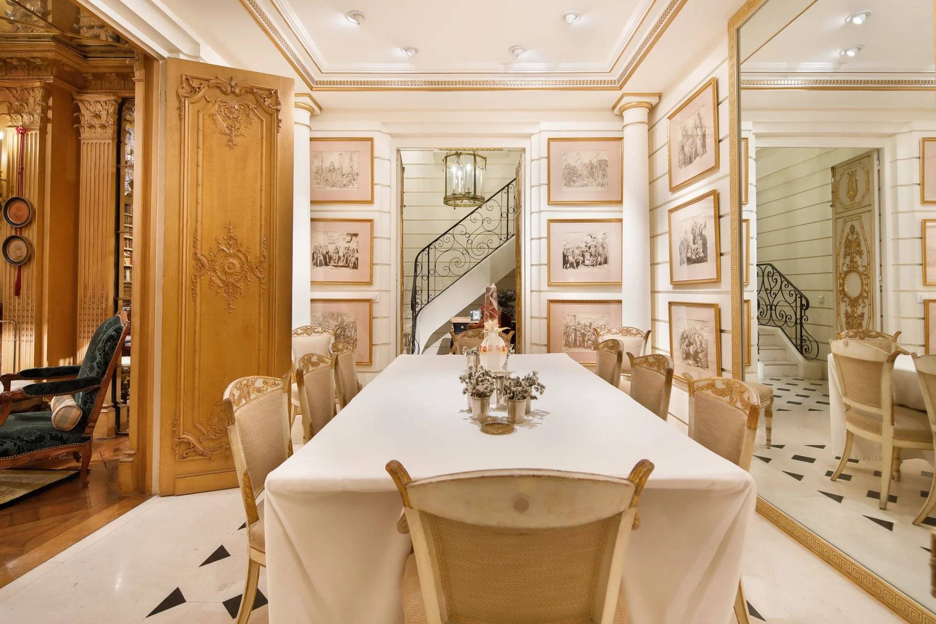 中庭の奥に位置し、美しい階段と専用エレベーターでつながる3階建ての希少な265平方メートルのアパートメントで、18世紀の美しい装飾が施されています。35平方メートルのテラスに面しており、以下の間取りを含みます: